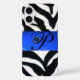 BLACK WHITE ZEBRA FUR SAPPHIRE BLUE GEM MONOGRAM, Case-Mate iPhone CASE