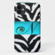 BLACK WHITE ZEBRA FUR TEAL AQUA BLUE GEM MONOGRAM, Case-Mate iPhone CASE