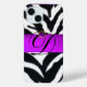 BLACK WHITE ZEBRA FUR VIOLET PURPLE GEM MONOGRAM, Case-Mate iPhone CASE