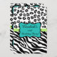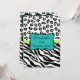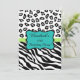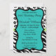 Customise this sophisticated invitation for a 60th birthday party or other event. Easy to customoize for another year. The design features black and white zebra stripes and leopard or cheeta) skins combined for a modern design. A turquoise teal blue emblem outlined in black sits on a lime green bar and creates a personalisation area, with the name and event that are easy customise. The back of the invitation includes fields for all of your information for a 40th birthday party or other event. You can easily change and delete fields as needed. Colours are white, black, turquoise and lime green. Wild animal zebra and leopard skins for graphic design is one of the hottest fashion and decorating trends. Coordinate with other products for a stylish party.