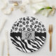 Black White Zebra Leopard Skin Monogram Paper Plate