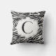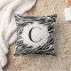 Black white zebra print pattern custom decorative throw/toss pillow featuring an animal print pattern and your text- monogram in a grey frame. This trendy, cute girly monogrammed design is perfect for a retro/vintage or modern/contemporary style home.
