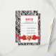 Black white zebra print & red jewel wedding RSVP Card