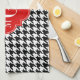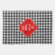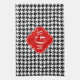 Black Wht Houndstooth Red Quatrefoil 3 Monogram Tea Towel