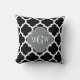 Black Wht Moroccan #5 Charcoal 3 Initial Monogram Cushion