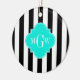 Black and White Stripe Pattern, Bright Aqua Quatrefoil 3 Initial Monogram
