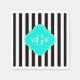 Black Wht Stripe Bright Aqua Quatrefoil 3 Monogram Napkin