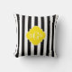Black Wht Stripe Brt Yellow Quatrefoil 3 Monogram Cushion