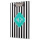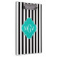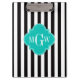 Black Wht Stripe Teal Quatrefoil 3 Monogram Clipboard
