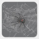 Black Widow Spider And Spiderweb Drawing Art Square Sticker