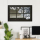 The artwork creates the illusion of having a window on your wall with an ominous white blossom view.  A Very unique and original poster!