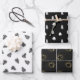 Stylish black Christmas gift wrap featuring black trees and black & gold stars