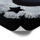 Traditional black witch hat with orange stars and a silver buckle. A cute little big eyed spider dangles from the tip. Background is painted white on black with a sprinkling of black stars. From my original painting. See my store Art by MAR for matching products with this design.