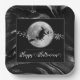 Serve up spooky style with this Black Witch Silhouette Halloween paper plate featuring a captivating witch silhouette gliding on her flying broomstick across a glowing full moon. Twinkling star trails add a touch of magic, while “Happy Halloween” in elegant script stands out beautifully against a sophisticated marbled background. Perfect for Halloween parties, this festive party supply is both durable and decorative—ideal for showcasing your treats while adding a bewitching charm to your holiday table.
