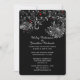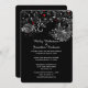 Black with Abstract White Flowers Red Hearts Invitation