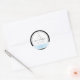 Round wedding sticker with thick black border and a blue ribbon across the bottom. Customisable text for a monogram, bride & groom's first names and wedding date. See www.zazzle.com/daisylin712 for matching wedding invitation and RSVP card.
