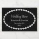 Mini wedding sparkling wine bottle labels done in black with graphics of an oval text area made of diamonds. Personalise the text for your wedding favours.