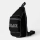 Sling Bag print cut sew style storage bag and casual fun fashion statement accessory printed with Black With Grey Text On Black Solid Colour graphic art design illustration and select products collection by TheFabricSeal print on demand shop at Zazzle.com #ZazzleMade https://www.zazzle.com/store/thefabricseal TheFabricSeal©️Original.
