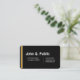 A simple and clean business card design. The card comes in plain black with an orange stripe between to white stripes. Add your information to this template and you are good to go.