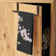 Black with Pink and Green Cherry Blossom Sakura Tea Towel