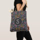 Black with Pink and Yellow Floral Monogram Tote Bag