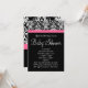 Elegant black background with hot pink fuchsia magenta accent, and black and white damask pattern. Fresh, clean and elegant damask accent, and coloured horizontal accent strip. Customise online with your girl baby shower details.