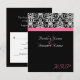 RSVP card to match our Elegant black background with fuchsia magenta hot pink accent, wedding invitation. Fresh and elegant black background with black and white damask accent, and coloured horizontal accent strip. Customise online with your wedding details.