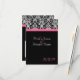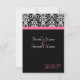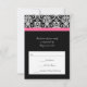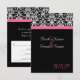 RSVP card to match our Elegant black background with fuchsia magenta hot pink accent, wedding invitation. Fresh and elegant black background with black and white damask accent, and coloured horizontal accent strip. Customise online with your wedding details.