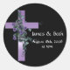 Black with Purple Cross with Purple Flowers Classic Round Sticker