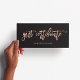 This stylish, modern gift certificate features a dark black background, with trendy faux rose gold handwritten script typography.