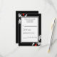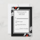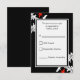 This pretty RSVP response card is perfect for your formal wedding. Black wedding RSVP response card features a large white damask print in the upper left and lower right hand corners of the RSVP front, along with a small area of red damask print. The text area of the response card is white with black trim. The text is in black calligraphic font. Customise with your RSVP date. The reverse side of the Black with White and Red Damask Wedding RSVP Response Card is solid black. Sold separately are matching wedding invitations, save the date cards, and postage stamps. Though the invitations come with plain white envelopes, outer envelopes with matching black damask print are also sold separately. Also available are matching wedding Save The Date magnets and wedding favour magnets!
