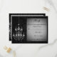 Elegant wedding and stationery set features black damask scroll background with white crystal chandelier dangling light fixture silhouette, perfect for a formal, elegant, traditional winter wedding or for any season!