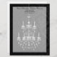 Elegant wedding and stationery set features black damask scroll background with white crystal chandelier dangling light fixture silhouette, perfect for a formal, elegant, traditional winter wedding or for any season!
