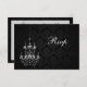 Elegant wedding and stationery set features black damask scroll background with white crystal chandelier dangling light fixture silhouette, perfect for a formal, elegant, traditional winter wedding or for any season!