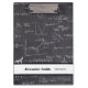 Great clipboard for math teachers or students. The background looks like a blackboard with mathematics equations and graphics written with chalk. Personalise it with your own information or message. Illustrated and designed by Patricia Alvarez.