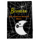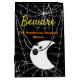Gift Bag With "Beware" and personalised text Black with White Spider Webs and cute Modern Ghost Fun and Friendly Frightful Halloween Party / Haunted House Party.