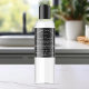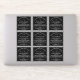 This waterproof cosmetics product label measures approximately 2.5 inches by 2.5 inches and features a black background with white text with space for your business name, product name, ingredients, and contact information.