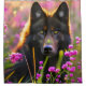 Cute black wolf in pink flowers