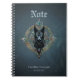 Black wolfs head with piercing blue eyes, notebook