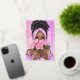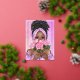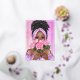 Black woman birthday party invitation in accents of pink, purple and gold customisable to your event specifics.