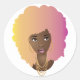 Black Woman, Colourful Yellow, Orange & Pink Hair Classic Round Sticker