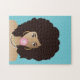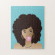 Black Woman, Pink Bubblegum, Natural Hair, Blue Jigsaw Puzzle