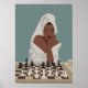 Black woman playing chess, boho style, chess game, bohemian style, african american girl.
