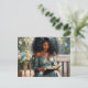 Celebrate quiet moments and feminine elegance with this floral fashionista postcard featuring a richly textured painting of a beautiful Black woman with thick, wavy hair reading a book white seated outside on a bench. Styled in a low-cut floral dress and surrounded by lush blooms, this girly flower-core artwork evokes leisure, peace, and soft romance. Ideal for book lovers, art collectors, or anyone who finds joy in cozy solitude and floral charm. Great for sending thoughtful notes or framing as mini art!