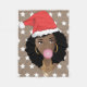 Black Woman, Red Santa Hat, Bubblegum, White Stars Fleece Blanket