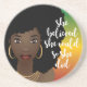 This design features a beautiful natural hair woman with full afro and red lips with the quote, "She believed she could, so she did".
