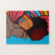 Black Woman, Wrapped Natural Hair, Colourful Blue Jigsaw Puzzle