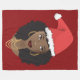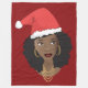 This design features an African American woman with a Santa hat over her fabulous afro and gold accessories on a red background.