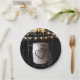 Black Wood String Lights & Barrel Rustic Wedding Paper Plate