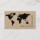 A business card for a travel agent, or any other professional... with the image of a black map of world on kraft paper.